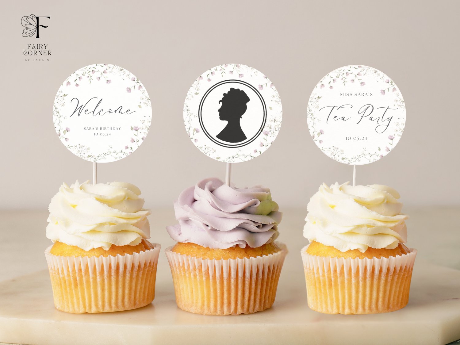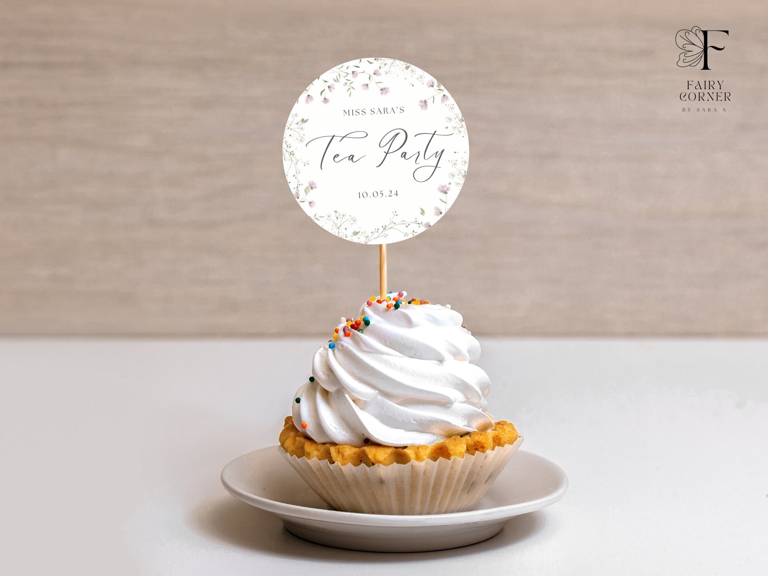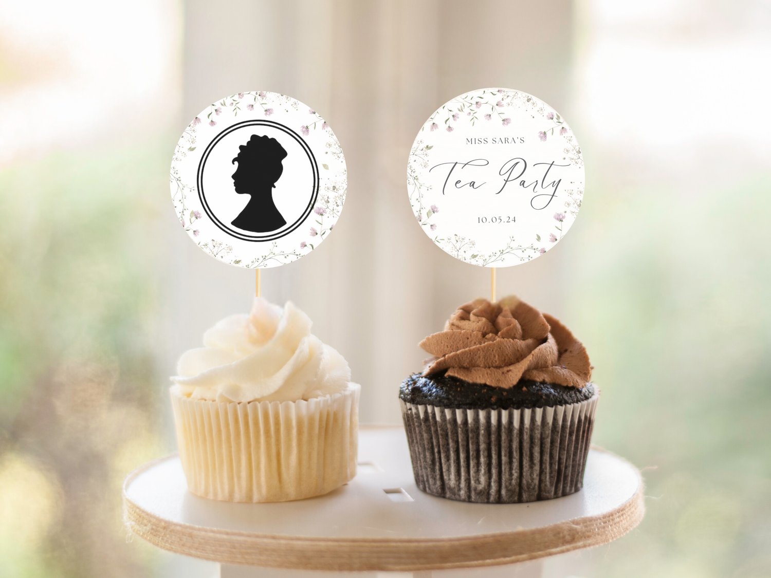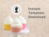 Tea Party Cupcake Topper, Elegant Watercolor Topper Template