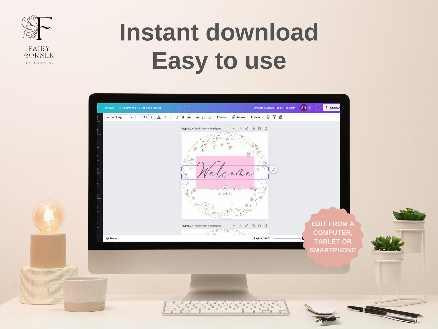 ✨ Cupcake topper template 2X2in with 3 designs