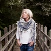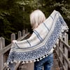 Lunae has a relatively shallow, elongated triangular shape. A prominent design feature are the vertical and horizontal mosaic bands that adorn the shawl. To achieve this look the Upper Body of the shawl is worked from side to side. For the Lower Shawl Body, stitches are picked up at the lower edge of the Upper Shawl Body. From here on you will be working downwards, further shaping the shawl by increasing at the sides and the center of your shawl.