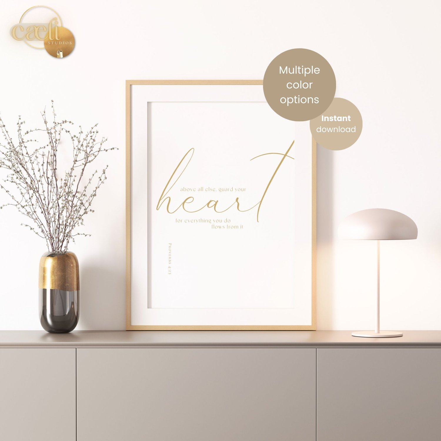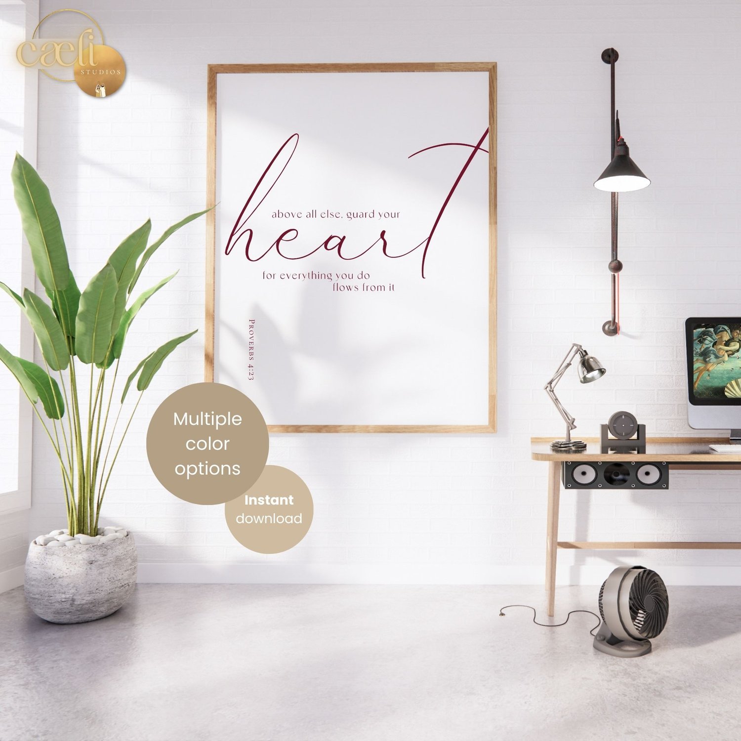 This digital download includes a Proverbs 4:23 Scripture verse printable wall art design perfect for a modern, minimalist or bohemian Christian home with 8 different color options.