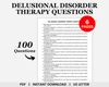 Designed to enhance client engagement and drive positive change, this therapy resource offers a collection of delusional disorder therapy questions. Tailored to the principles of psychotic disorders, these therapy questions will guide your sessions towards productive conversations and transformative outcomes. These delusional disorder questions are made to elicit insightful responses and encourage clients to explore their goals and aspirations.