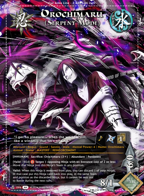 n96 - Orochimaru (Serpent Mode) Promo Ninja card from our Akatsuki card set for Naruto CCG.