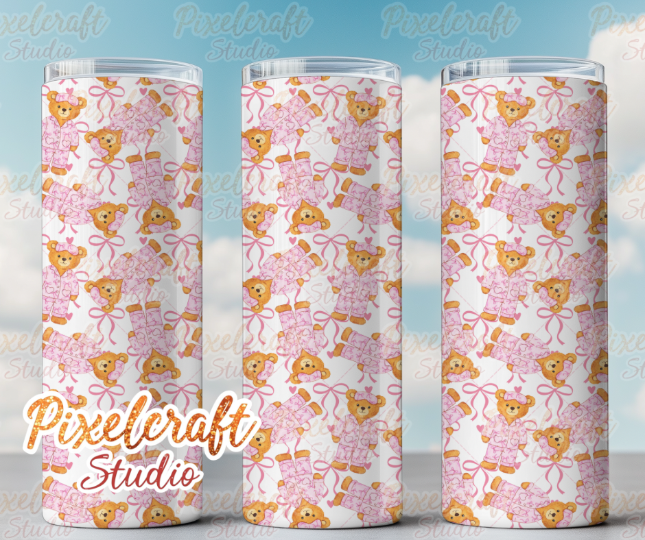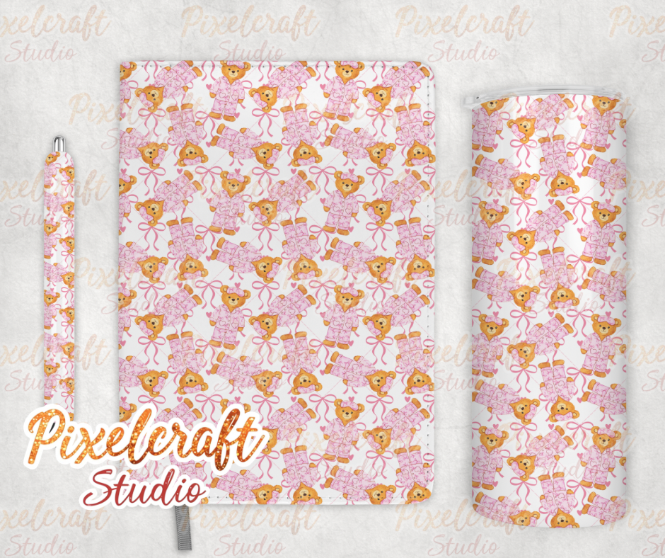 Pink pyjama bear Seamless Pattern PNG