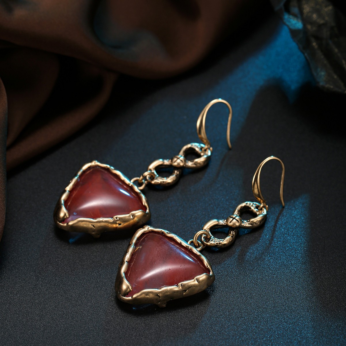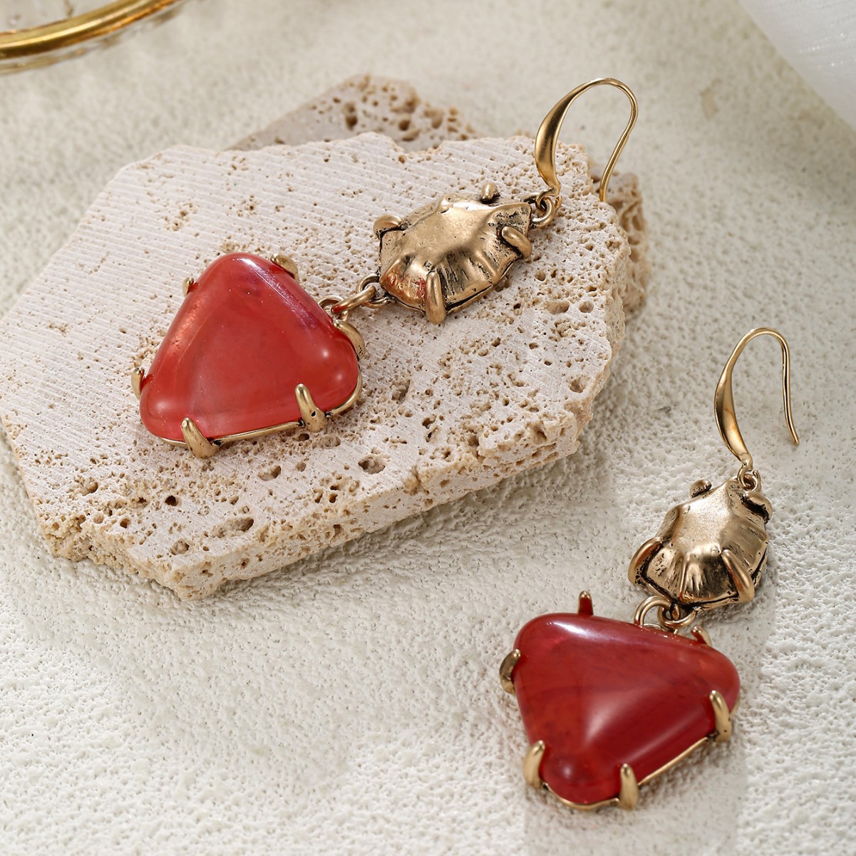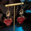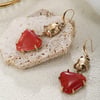 Designer vintage style natural stone watermelon red heart pendant earrings