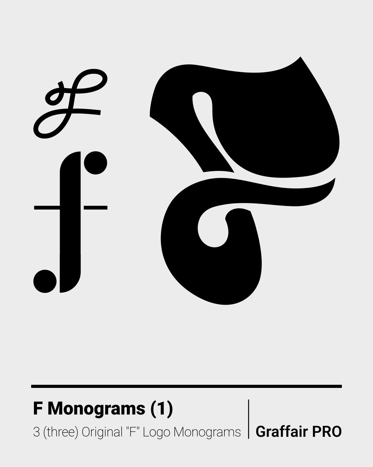 F Monograms (1): The 1st set of three original "F" logo monograms, selected from a total of 22, included in the "1050 SVG Monograms" super package, which also features an Index catalog.