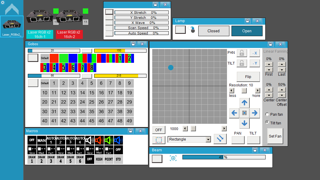 Librería para Freestyler DMX de este Láser Chino RGB doble boca de 16CH.