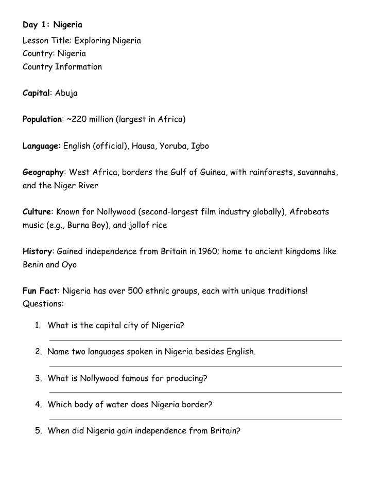Embark on a 60-day global adventure with "Countries of the World: A Delight-Directed Workbook"! This engaging, hands-on guide invites learners of all ages to explore 60 diverse nations—from the vibrant markets of Nigeria to the serene islands of Palau. Each daily lesson unveils a country’s capital, population, language, geography, culture, history, and a quirky fun fact, sparking curiosity about our planet’s rich tapestry.