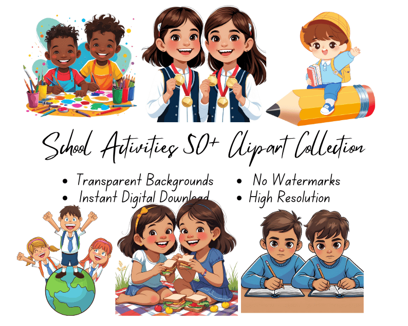 School Activities 50+ Clipart Collection | High-Resolution Digital Printables | Instant Download | No Watermark