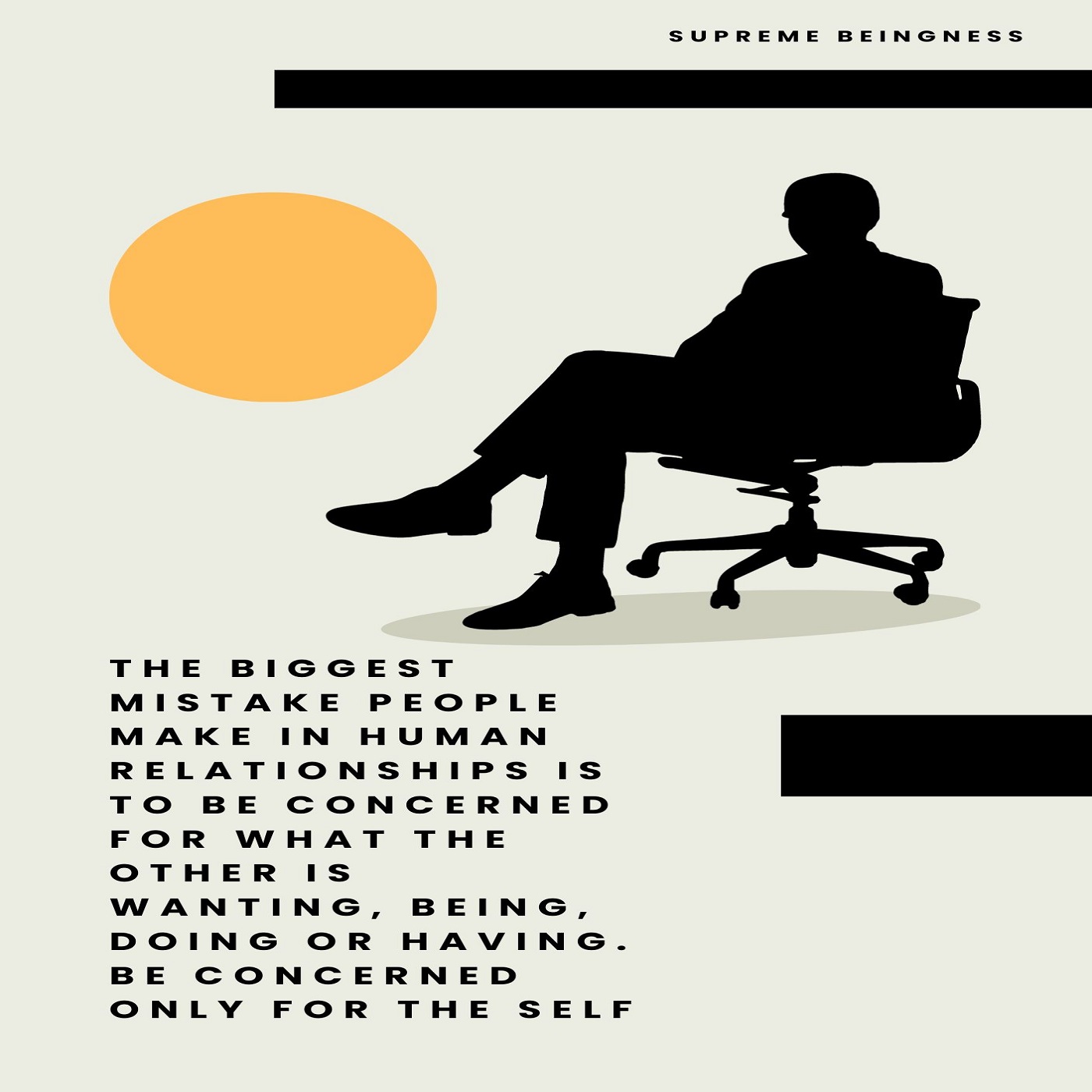 The biggest mistake people make in human relationships is to be concerned for what the other is wanting, being, doing or having. Be concerned only for the self.