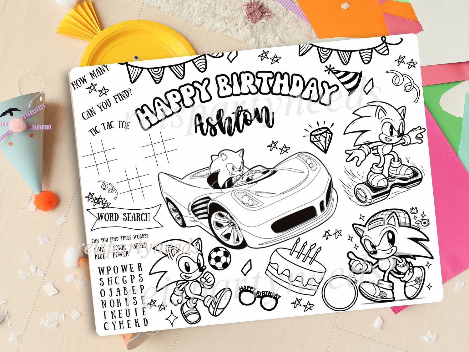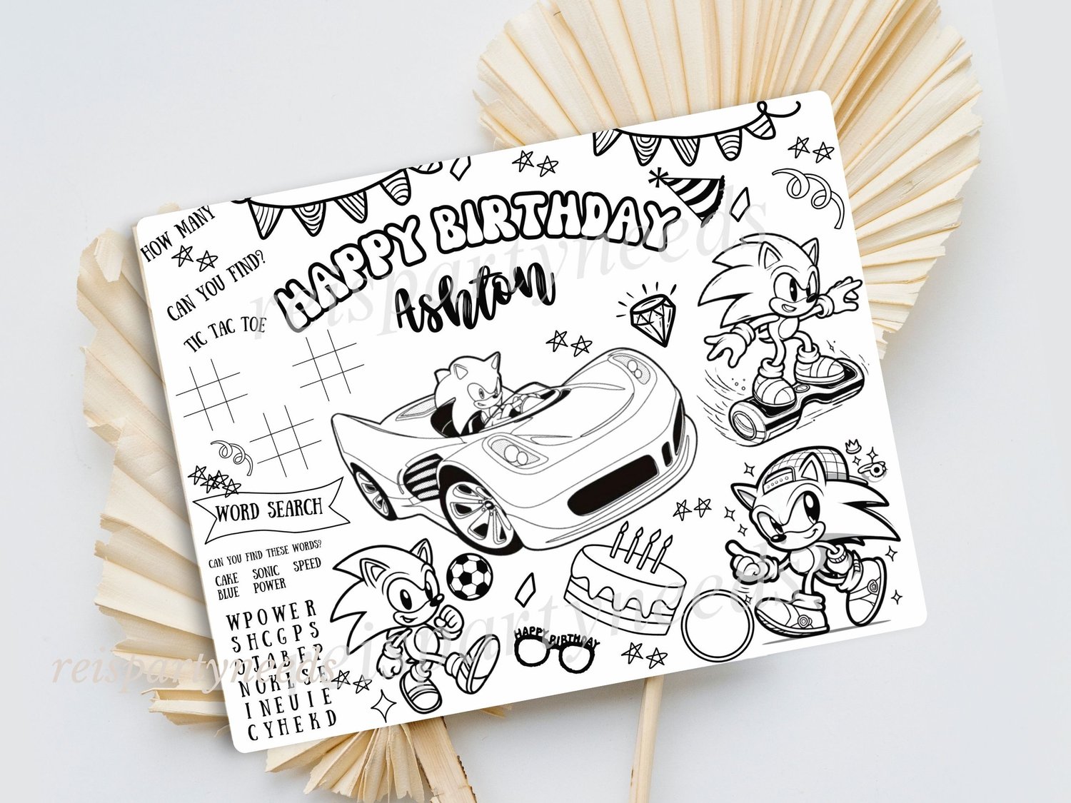 Sonic The Hedgehog Editable Coloring Placemat Coloring Page for Kids Birthday Party Sonic Coloring Placemat, Sonic Birthday Coloring Page