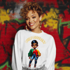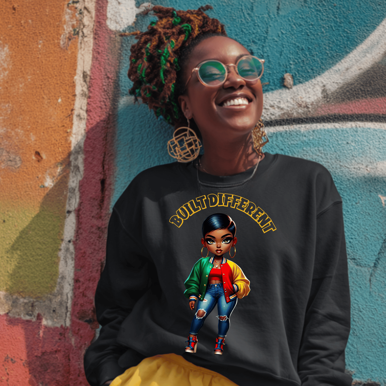 features a powerful melanin queen in vibrant streetwear and natural hairstyles – perfect for empowering apparel, mugs,