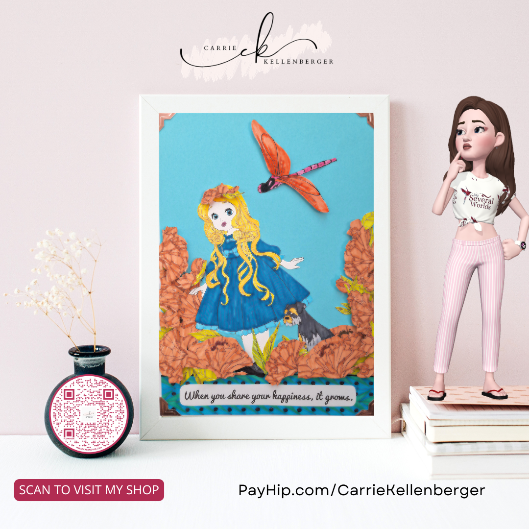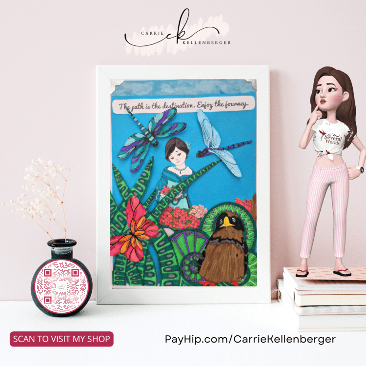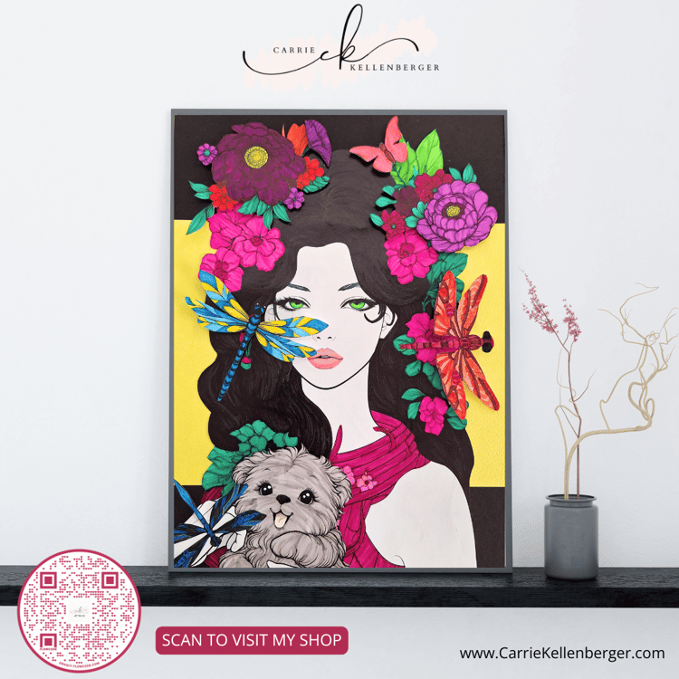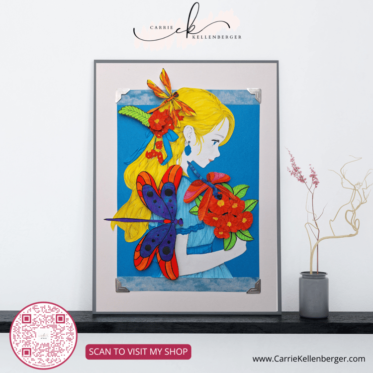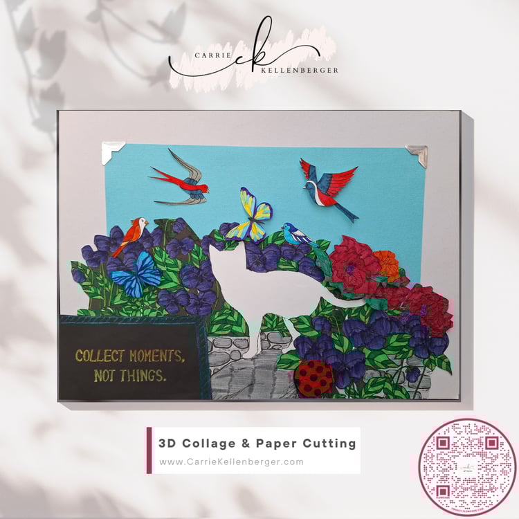 My paper cutting technique adds an extra 3D dimension of beauty and intricacy to each design, making my collages a delightful keepsake.They’re meant to brighten any space: an office cubby, a senior’s bedside, a child’s room, a sunny kitchen, or anywhere your heart desires.