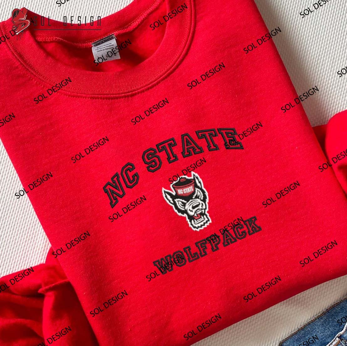 NC State Wolfpack NCAA College Football Team Embroidered Crewneck, NC State College Football Embroidered Sweatshirt, NCAA NC State Wolfpack Team Sweatshirt, Game Day Embroidered Hoodie, T-shirt