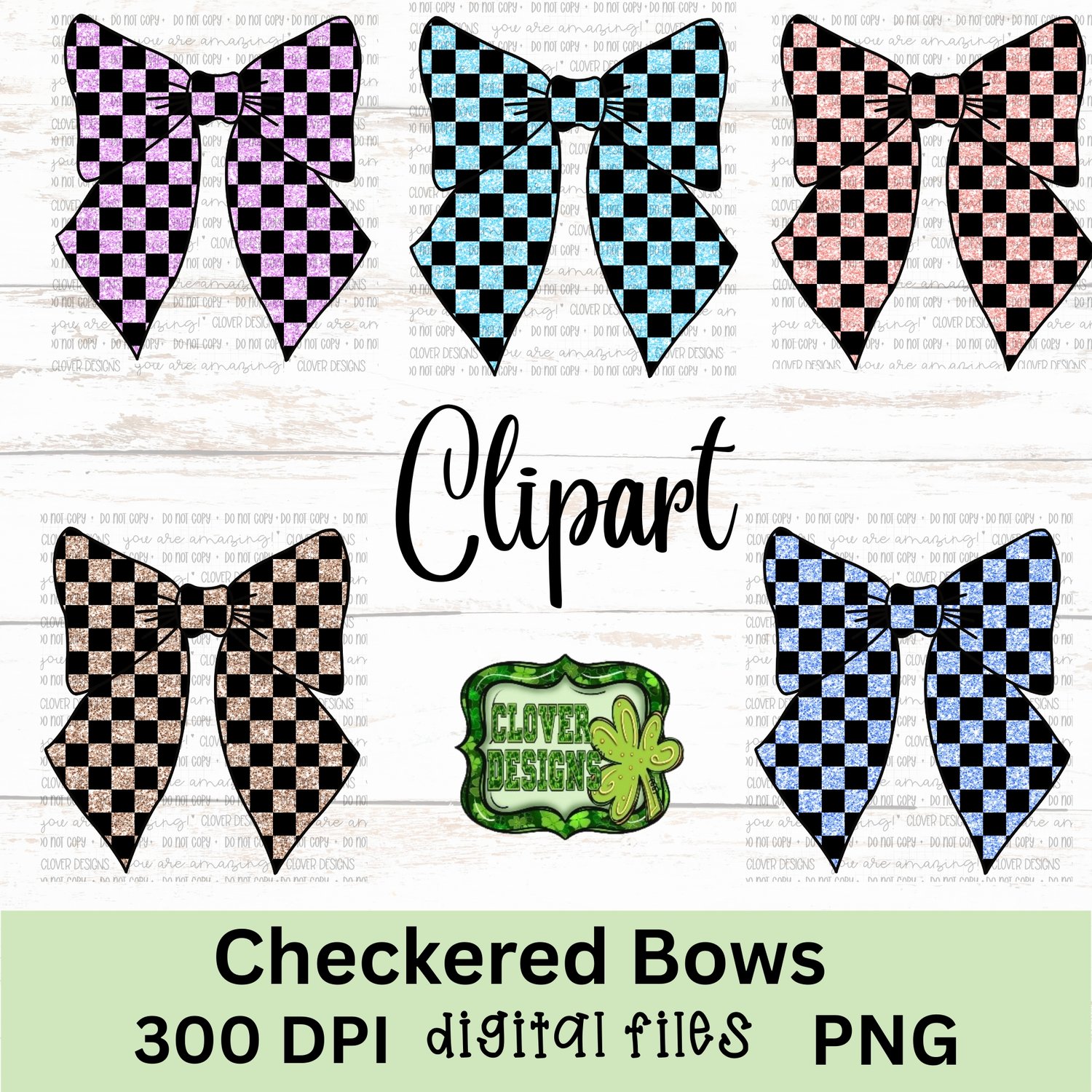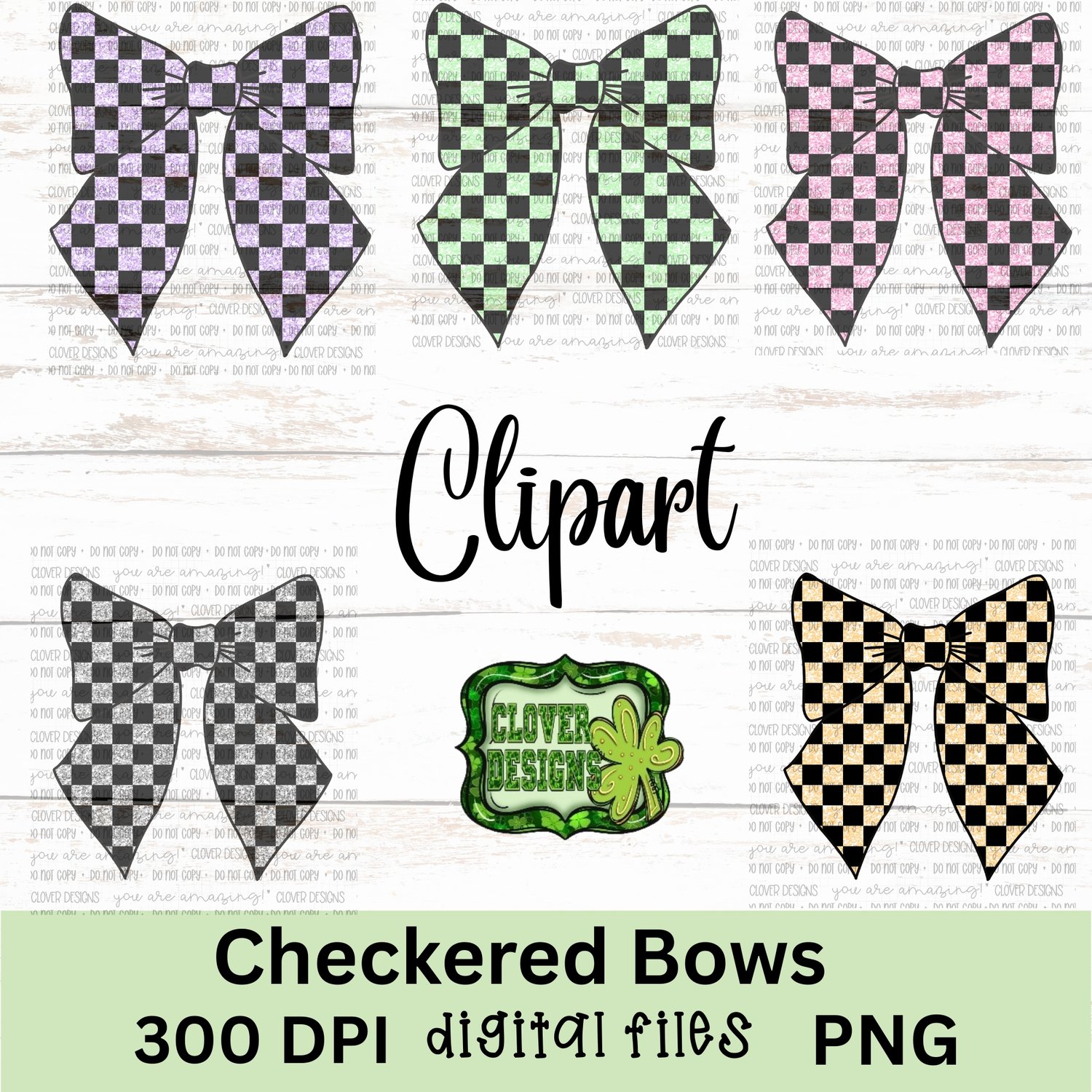Checkered Bow clipart set one (set of of 10) Sublimation design, Png, Instant download