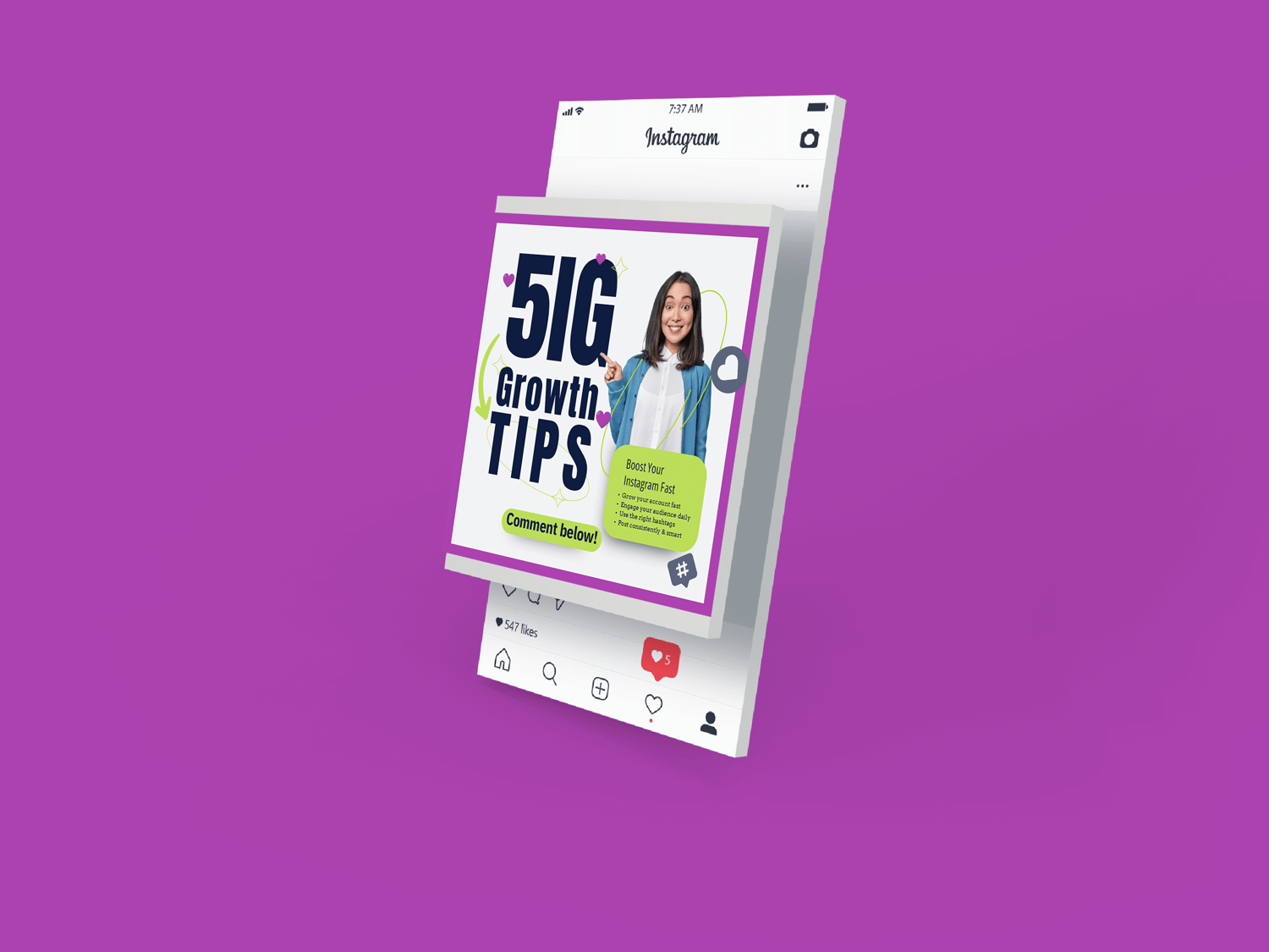 Boost your Instagram engagement and grow your audience with this professionally designed Instagram Growth Tips editable post template. Perfect for marketers, content creators, and social media managers, this template makes creating eye-catching posts simple and fast.