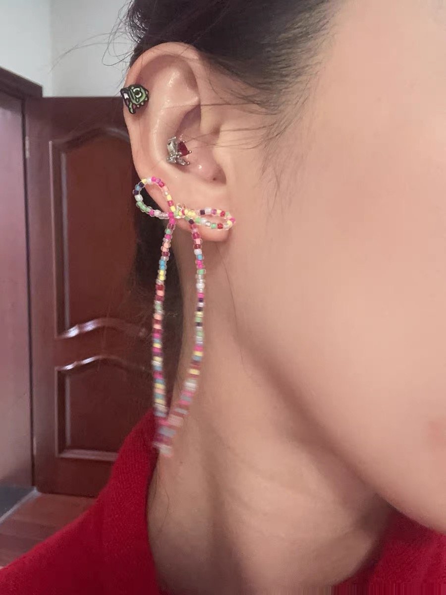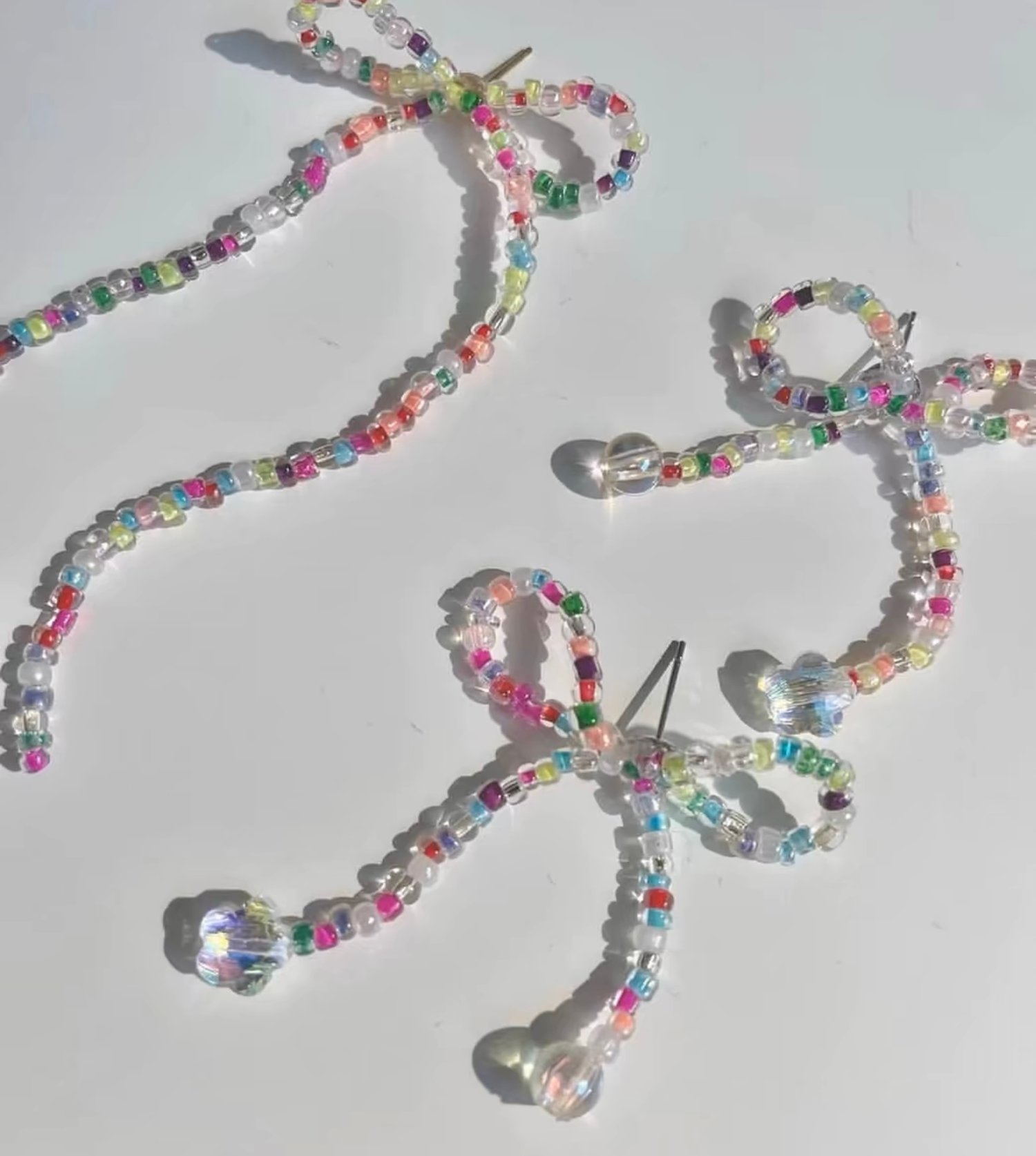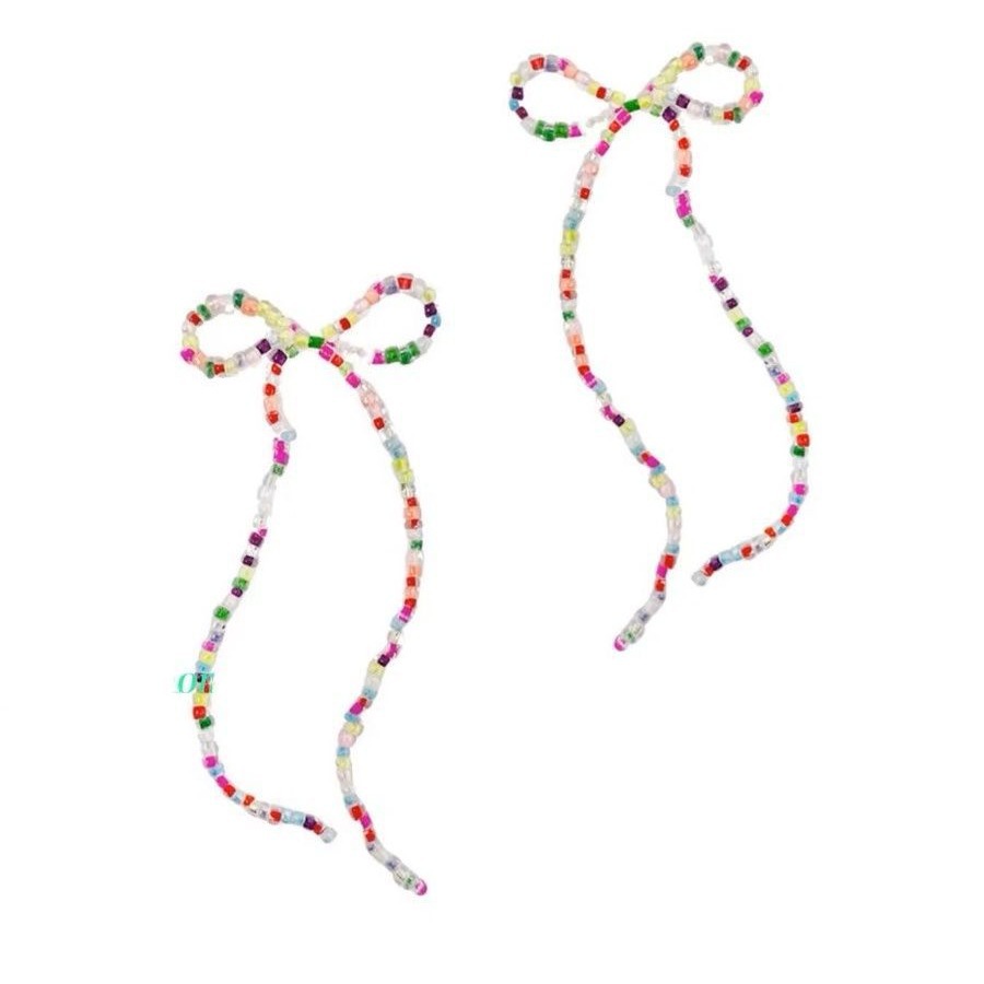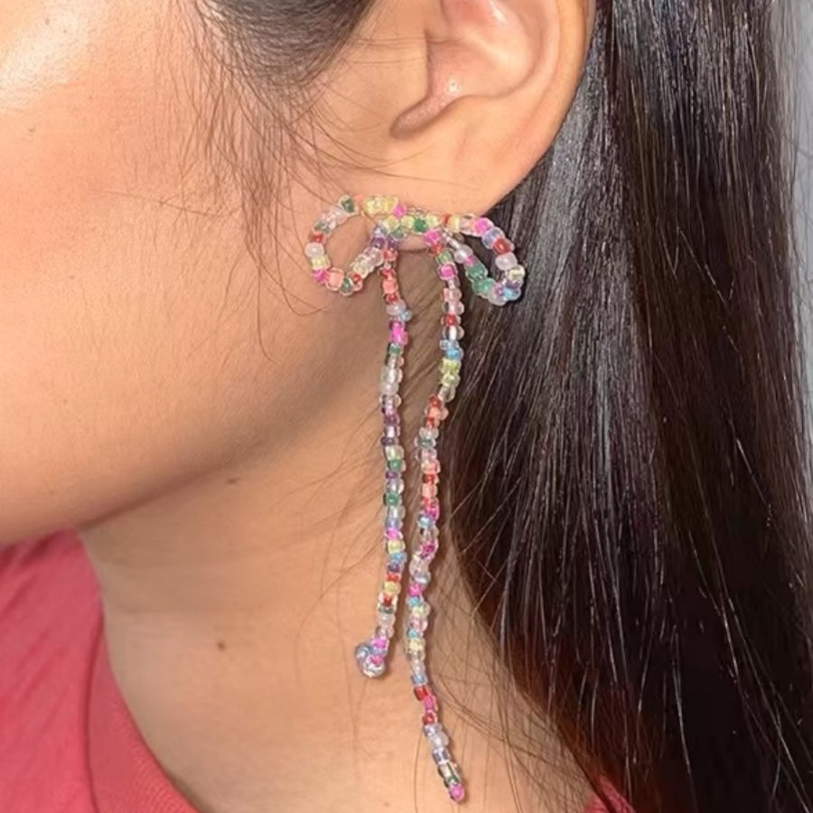 Rainy Day Amusement Park handmade beaded colorful bow S925 silver drop earrings