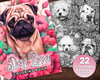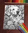 22 Blooming Dogs Creatures Coloring Page Book, Adults + kids- Instant Download - Grayscale Coloring Page, Printable PDF, Gift, Dog Love