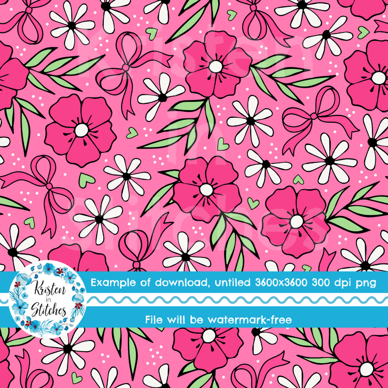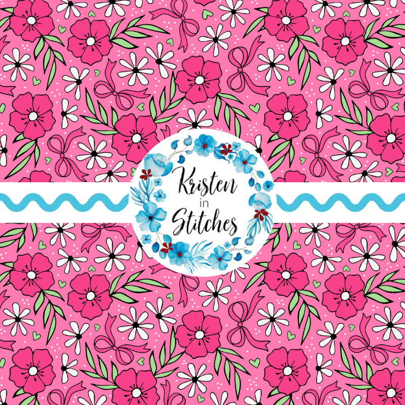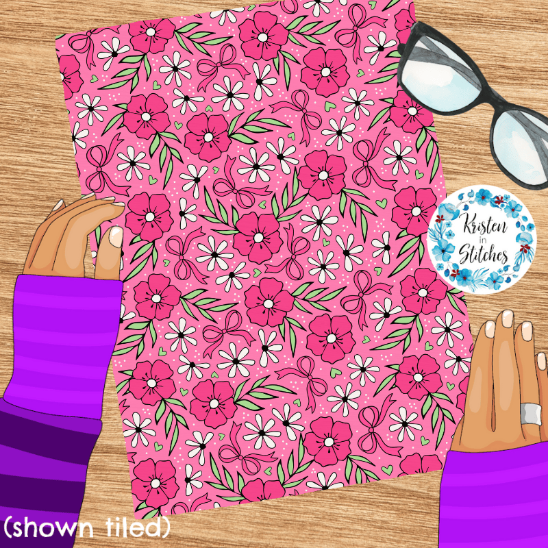 Sweet cottagecore floral with bows, hearts and daisy flowers.