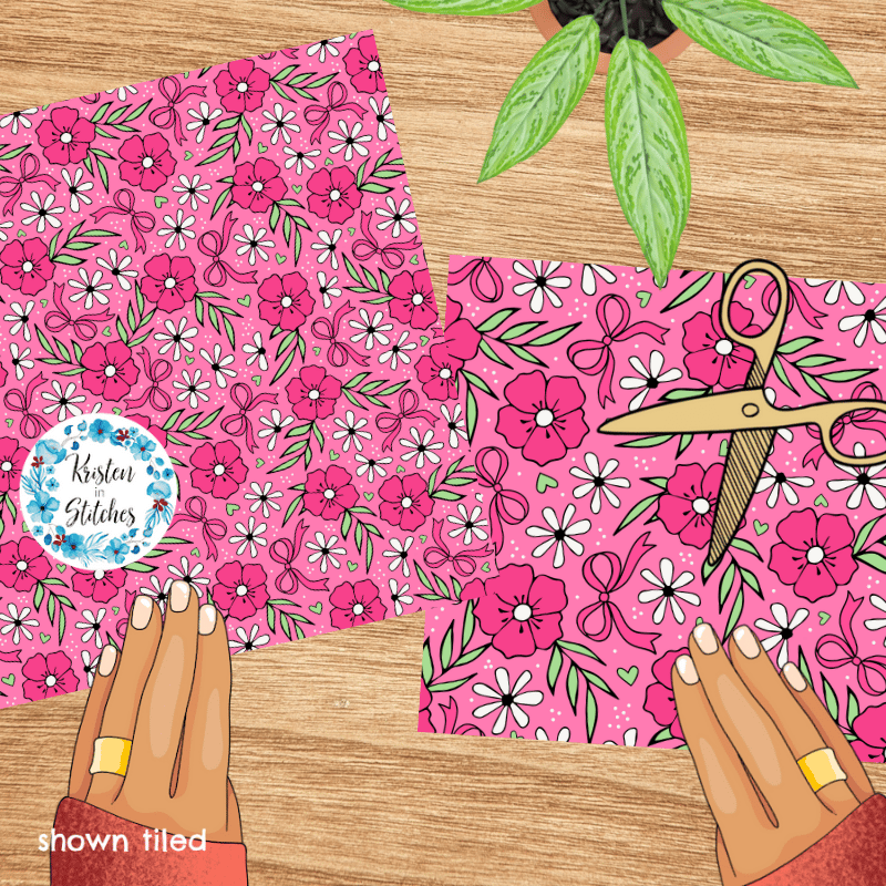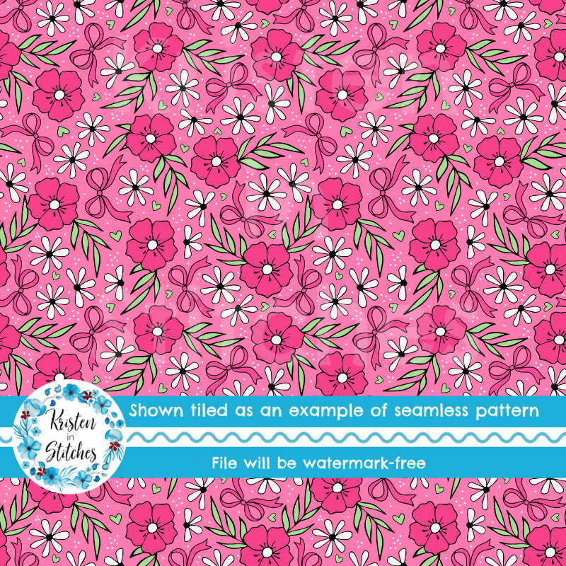 Coquette Wildflower Floral Seamless Pattern, Raspberry Pink Flower Blossoms
