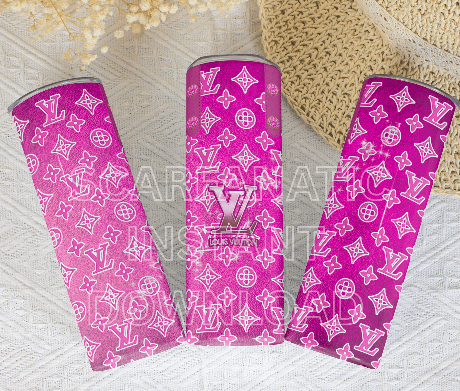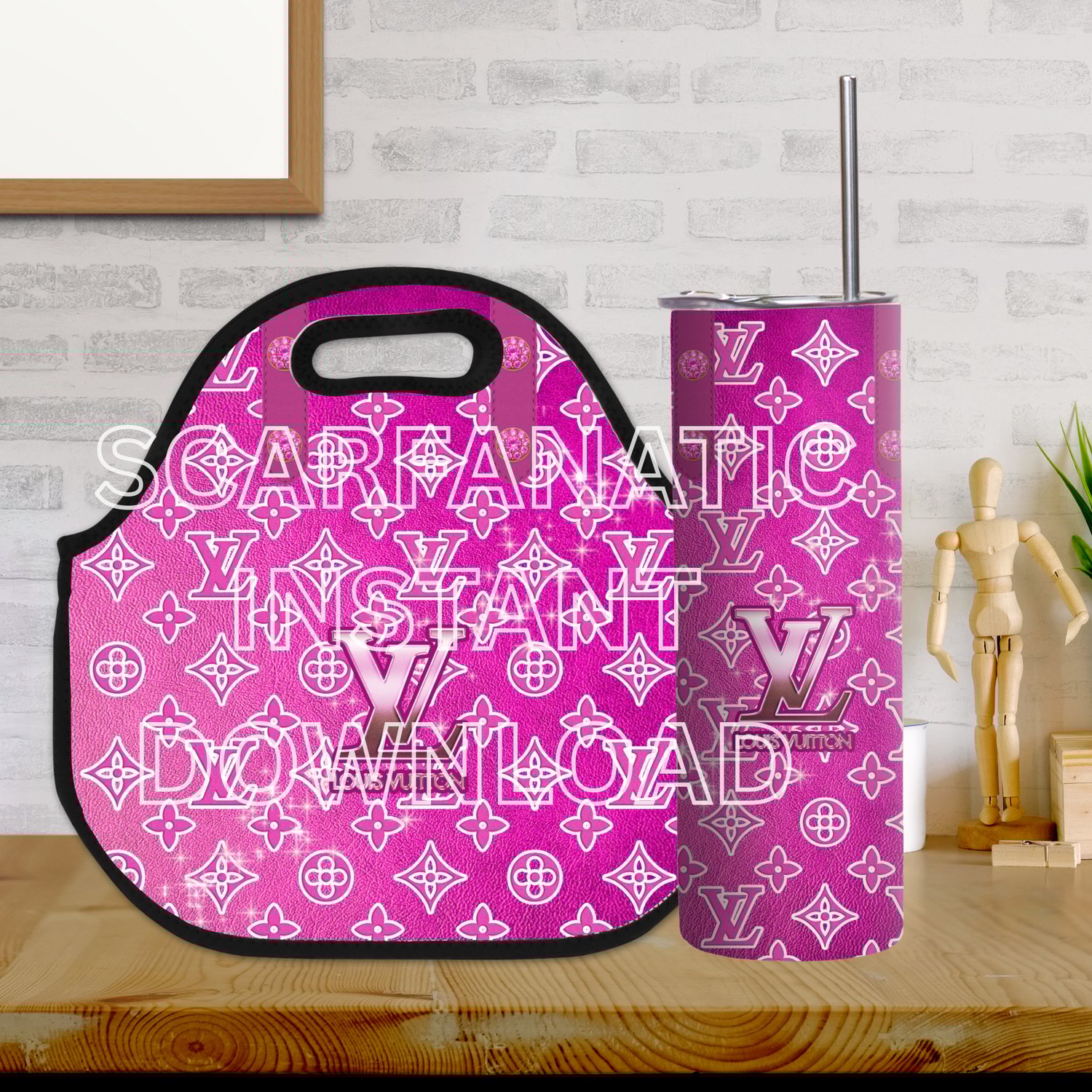 Fuschia/Hot Pink Leather and Denim 3D 20oz Tumbler and Lunch Tote PNG Design Bundle (2 different Designs)