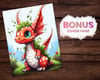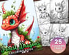 25 Baby Forest Dragon Fantasy Coloring Page Book, Adults + kids- Instant Download Grayscale Coloring Page, Printable PDF, Dragons coloring