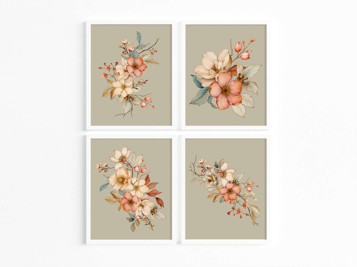 Floral Wall Art Set | Printable Botanical Prints for Home Decor | Set of 3 / 4