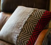 Design notes: The Pyramid Lake Pillow is worked in one piece, beginning and ending at button closure on the back. The piece is then folded and seamed together.