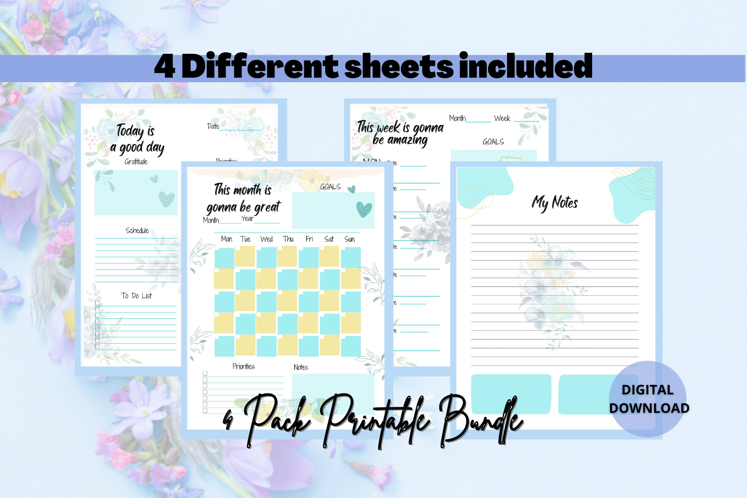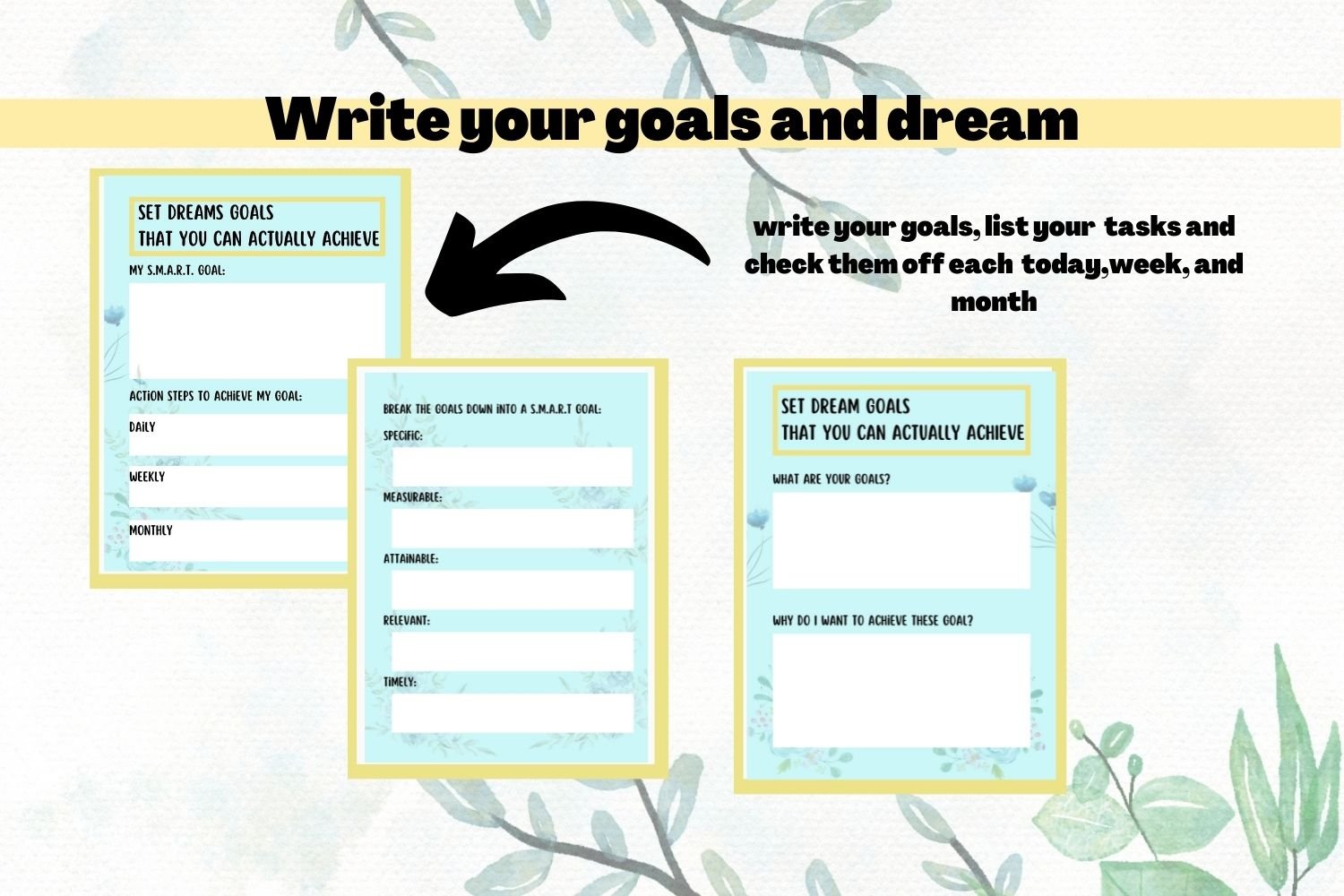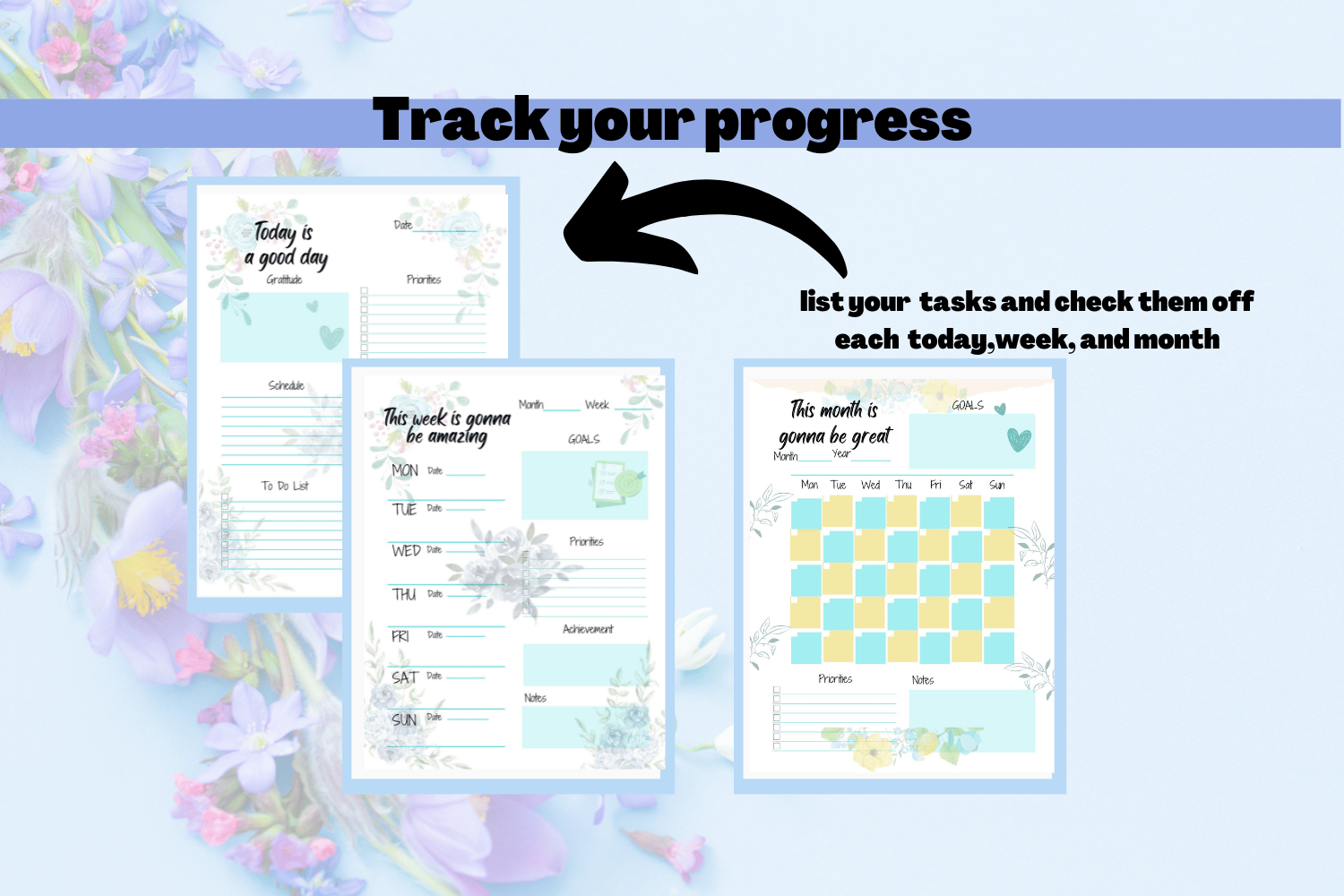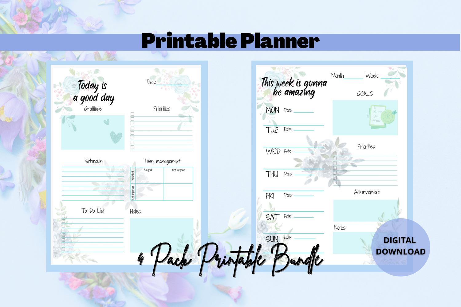 Watercolor Flower Blue Printable Planner and Setting GoalsTemplate Bundle are perfect for planning your day, week, and month, organizing goal setting, and more!