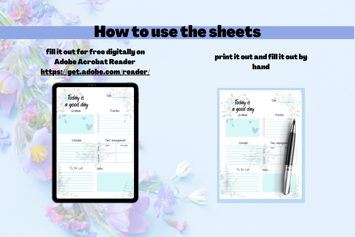 Click the BUY NOW button to get access to Watercolor Flower Blue Printable Planner and Setting GoalsTemplate Bundle