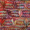 Leaf is measured over 9 rnds—7 stockinette rnds, Leaf Rnd, and Resolution Rnd. The leaf pattern disrupts the stockinette fabric, expanding the overall gauge.