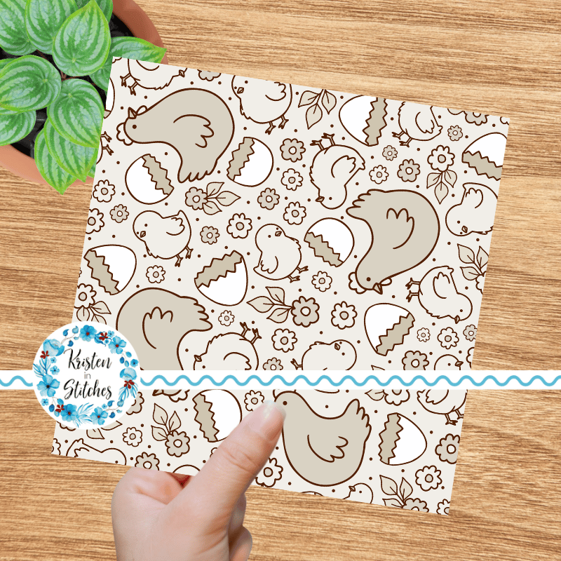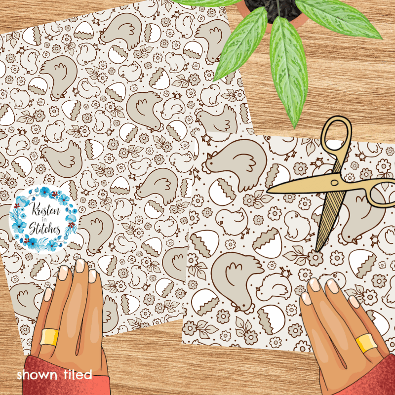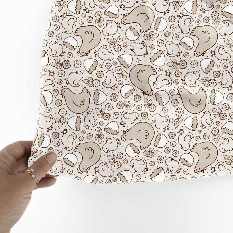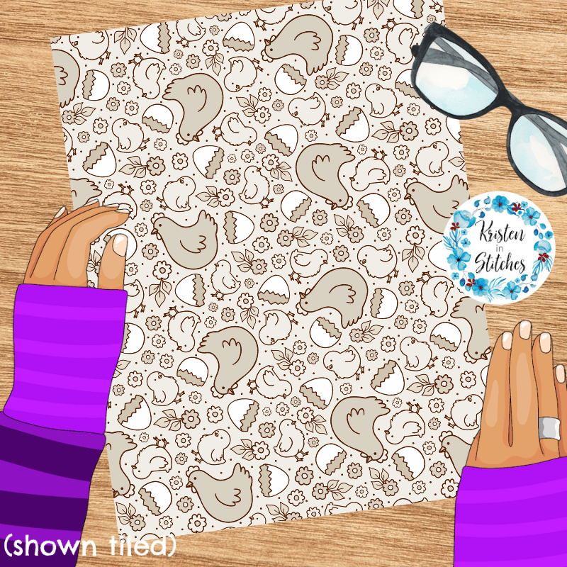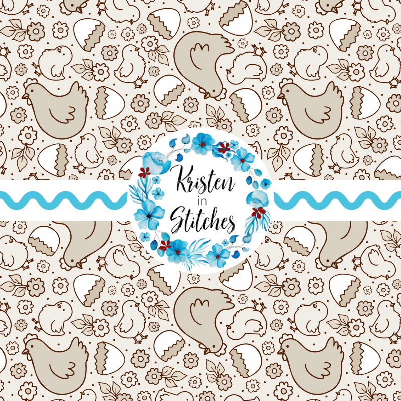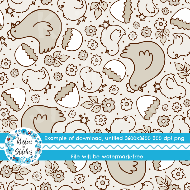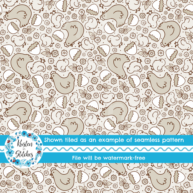Spring Hens and Chicks Seamless Pattern, Chicken Eggs, Tan