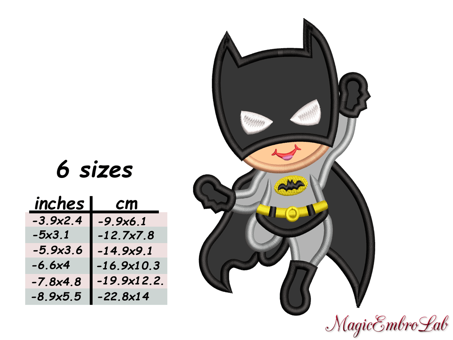 Superhero Baby Bat APPLIQUE, 6 sizes, Instant Download