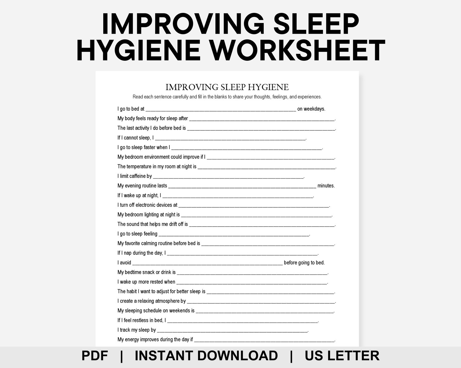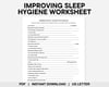 Improving Sleep Hygiene Worksheet, Sleep Habits, Bedtime Routine, Evening Reset, Insomnia Relief, Digital Detox, Mindfulness, Self Care