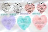 Bundle includes both readymade designs, and separate hearts and text for you to use different combinations.