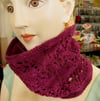 A garland of leaves gently circle the neck in this pretty cowl pattern, named Mala after the character played by Indian actress Rani Mukherjee in her first film.
