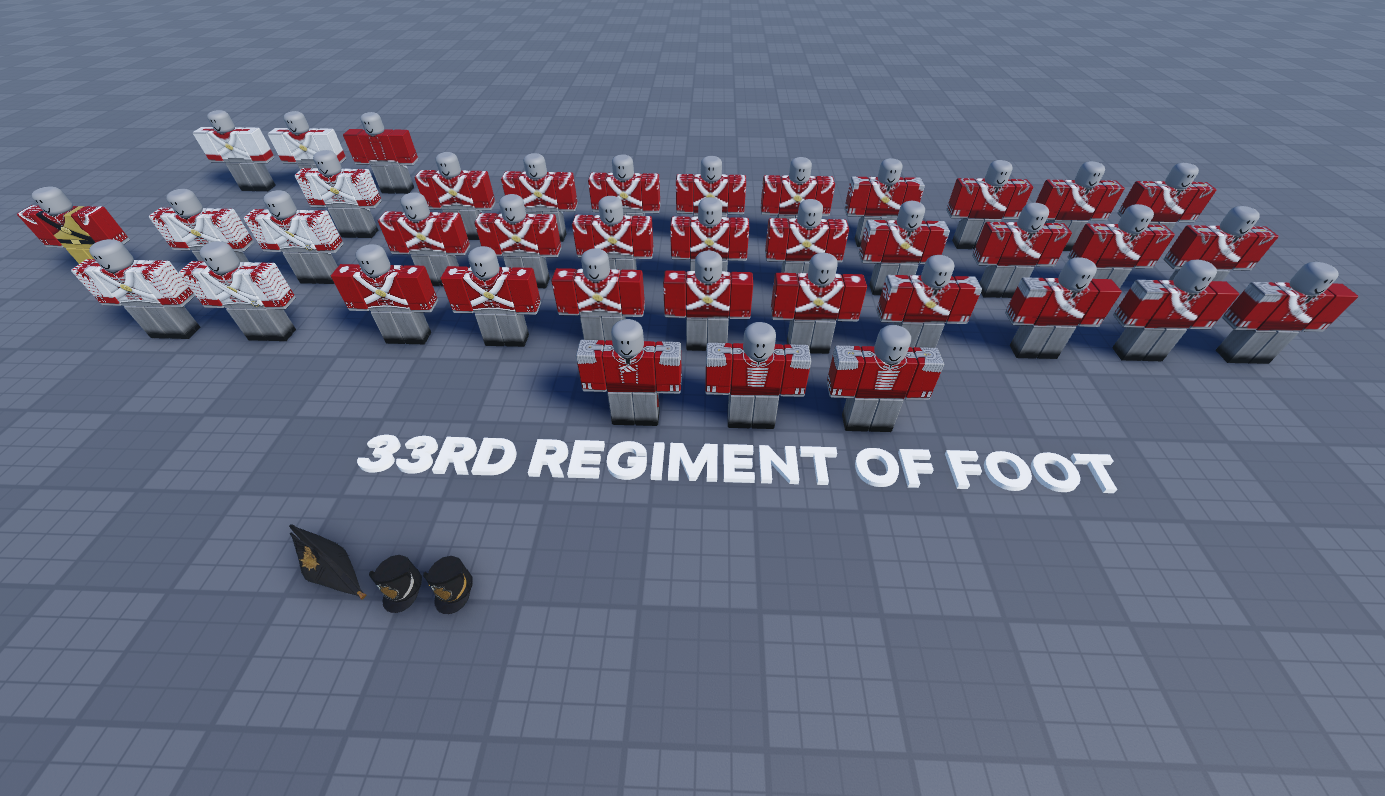 - 33rd Regiment of Foot "Wellington's Own"(3 companies+ fatigues,musicians,sapper)