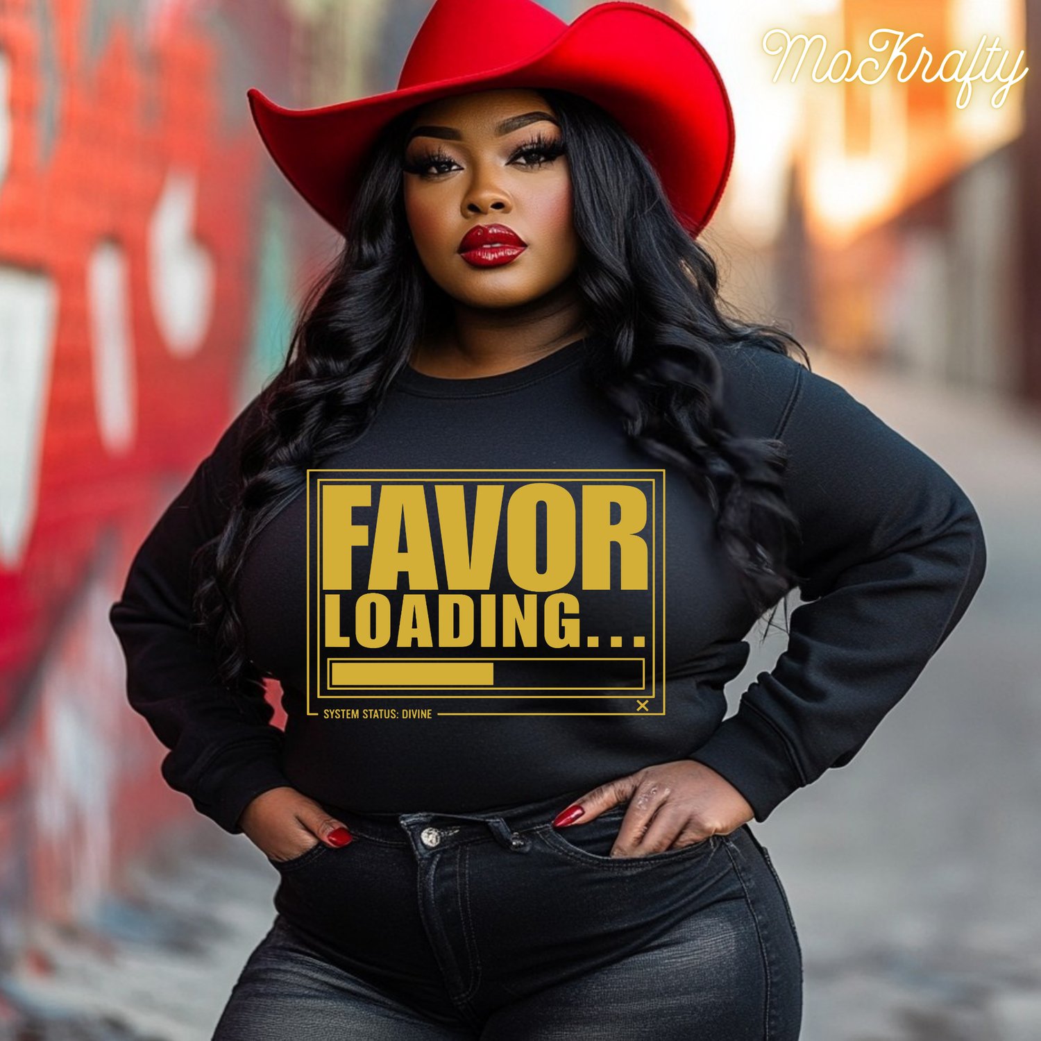 Favor Loading, Divine Favor, Christian PNG, Streetwear Design, Retro Tech Graphic, Gold Sublimation, Faith Based SVG, Manifestation PNG, Religious Shirt Design, System Status Divine.