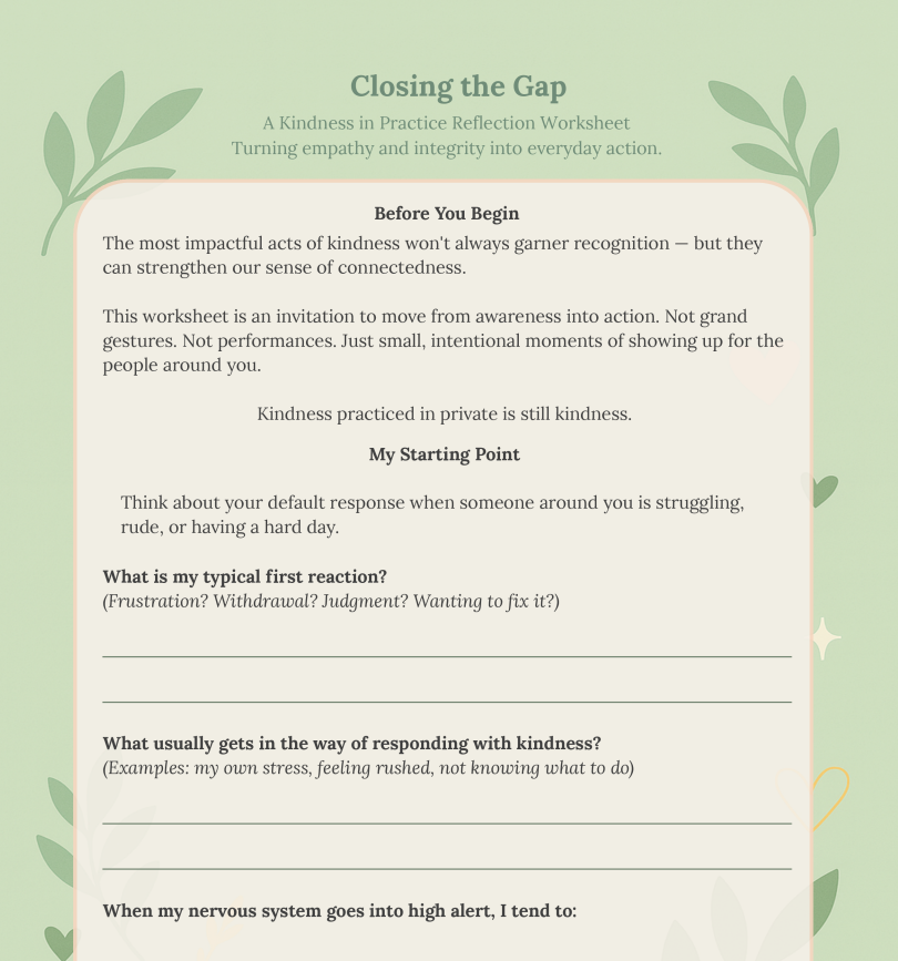 Closing the Gap: A Kindness in Practice Reflection Worksheet