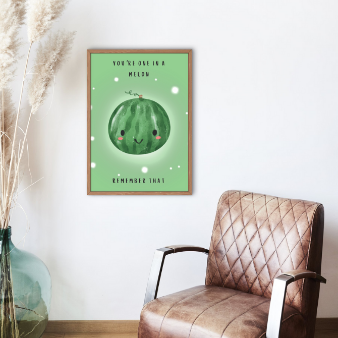 "You're One in a Melon, Remember That" – Watermelon Pun Poster