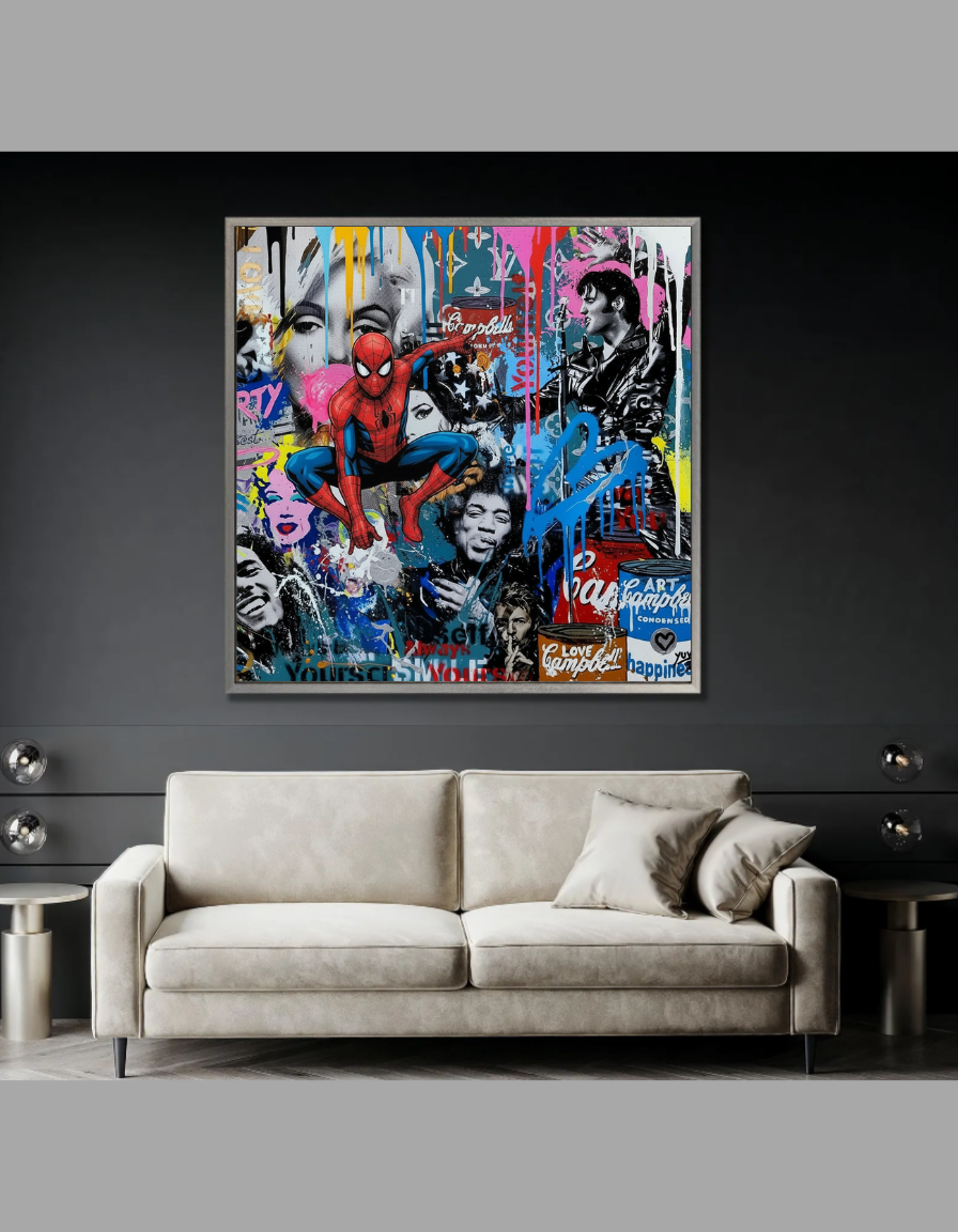 Spider-Man & Pop Icons Graffiti Mashup Art Print - Digital Download PNG | Celebrity Street Art Poster