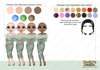 three different skin tones, three eye colours and 16 hair colours