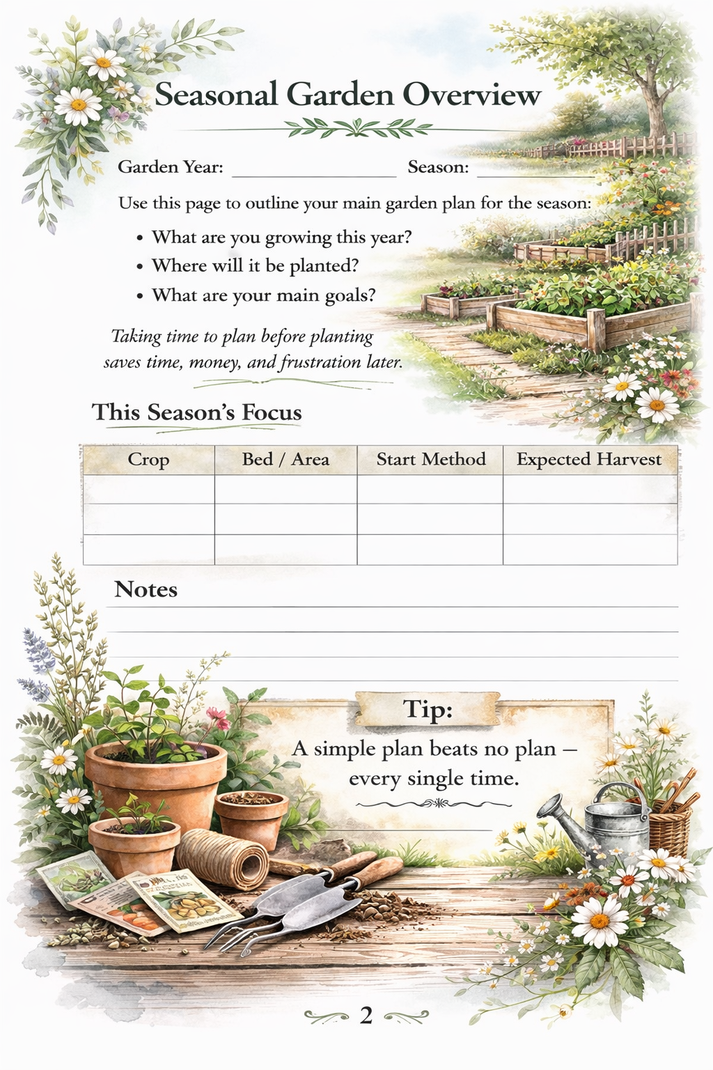 Whether you're brand new or seasoned with dirt under your nails, this bundle helps you stay organized from soil prep to final harvest.
