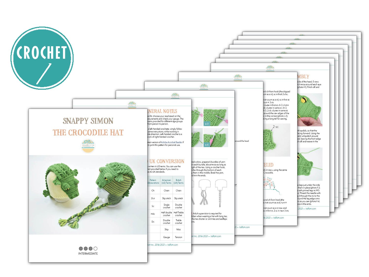 CROCHET PATTERN Snappy Simon The Crocodile Animal Hat