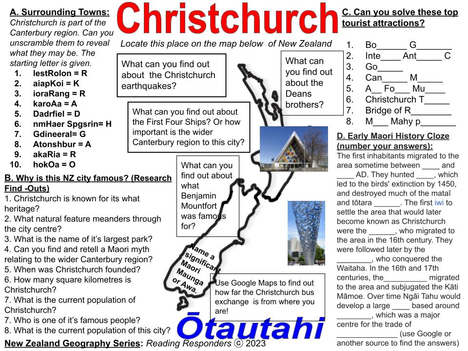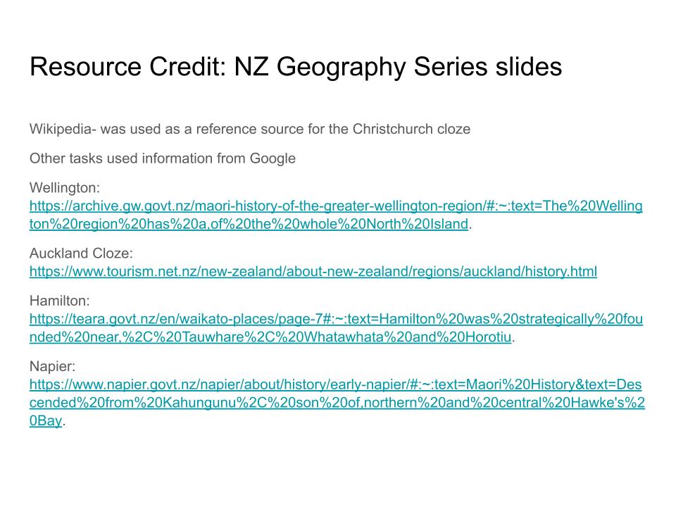 Introduction: The aim of this resource is to improve student knowledge and understanding of our main New Zealand cities/towns.