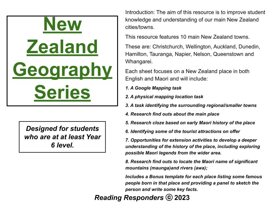 This resource features 10 main New Zealand towns.