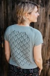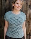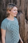 Sennen Cove is a lightweight cotton t-shirt with a bust size of 81-164cm (32-64in), designed to be worked with 5-10cm (2-4in) of positive ease. The top is worked from the bottom up in the round and the lace panel is featured on both the front and the back. The body is worked to the armholes and then set aside while you knit the sleeves. All pieces are then joined in the round and decreased for the raglans. The back neck is shaped using German short rows, before joining back into the round to work the neckband. Options are given to work a longer or shorter garment.