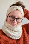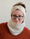 Here's a Tunisian crochet headband pattern, plus a cowl pattern, together making a gorgeous set, perfect for anyone who doesn't like or can't wear hats or scarves.Use an Aran or worsted weight yarn for finishing these up quickly, so you can get out in the snow and have some fun.