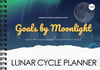 - Sections for clarifying your monthly goal, a method to break it down into action steps, intentions, weekly lunar phase layout, reflection, habit tracking and to-do lists.