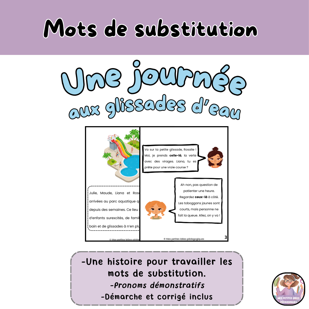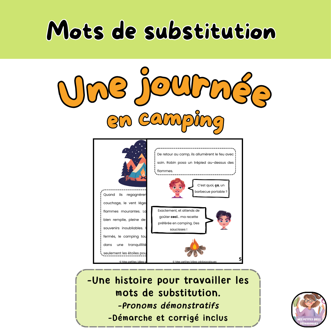 Ces histoires permettent aux élèves de travailler les mots de substitution lorsqu'ils sont sous forme de pronoms démonstratifs.