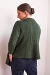 This beautiful cardigan combines traditional stitch patterns like cables and diamonds with modern garment shaping for a contemporary look.